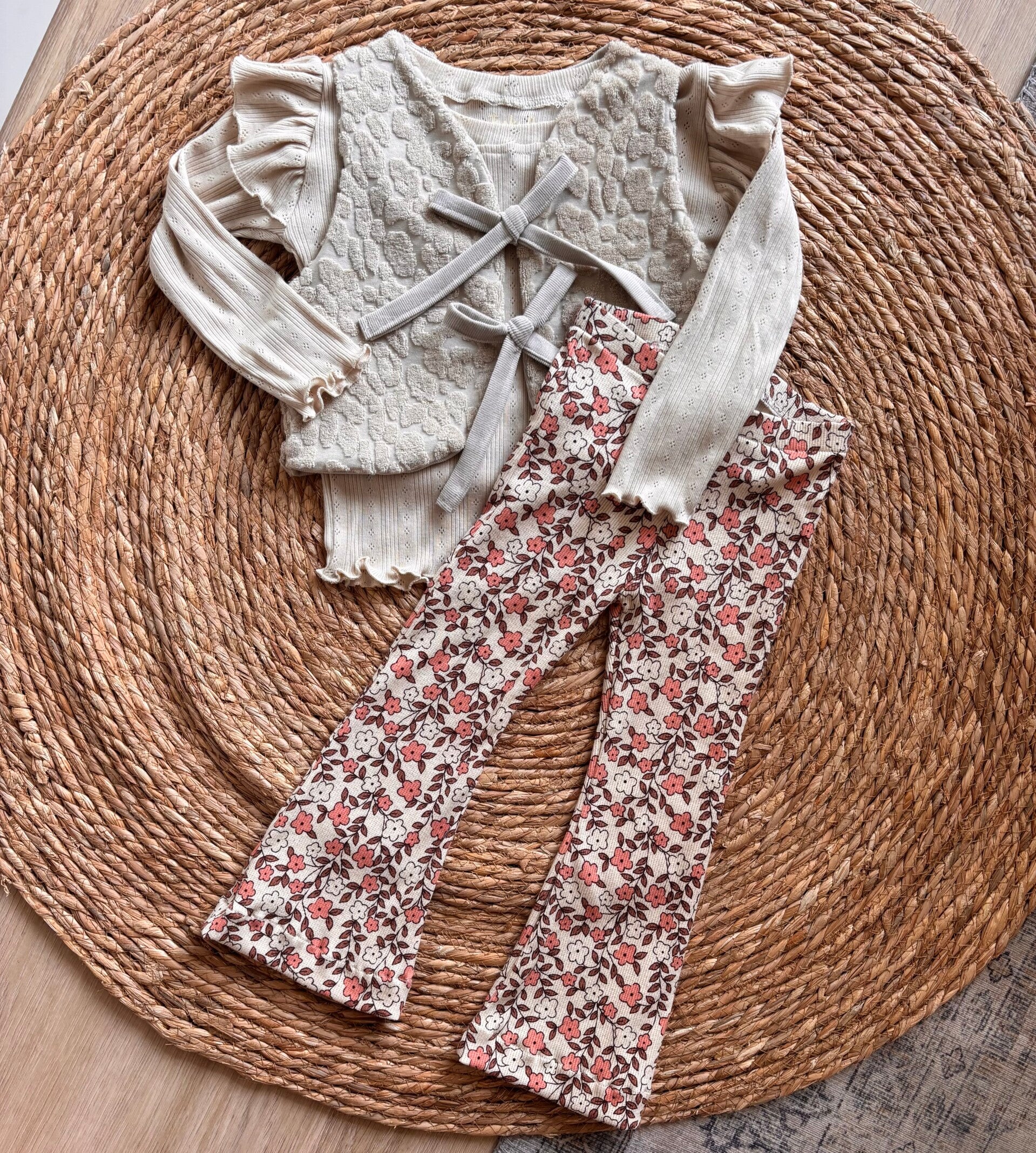 Beige Pink Rib Flowers Flared
