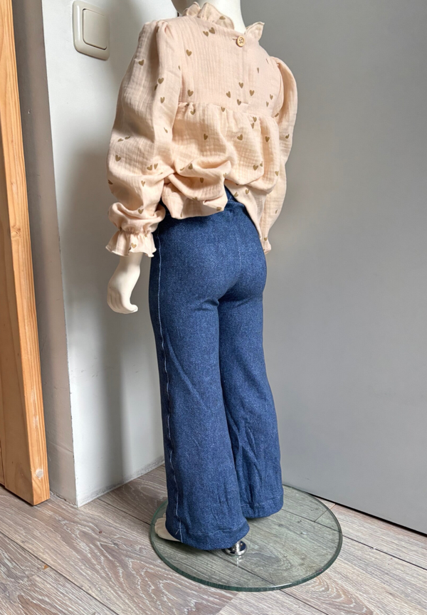 Wide Leg broekje gemaakt van een katoenen French Terry (95% katoen & 5% elastan). Het broekje is aansluitend aan de bovenkant en heeft wijde pijpen.