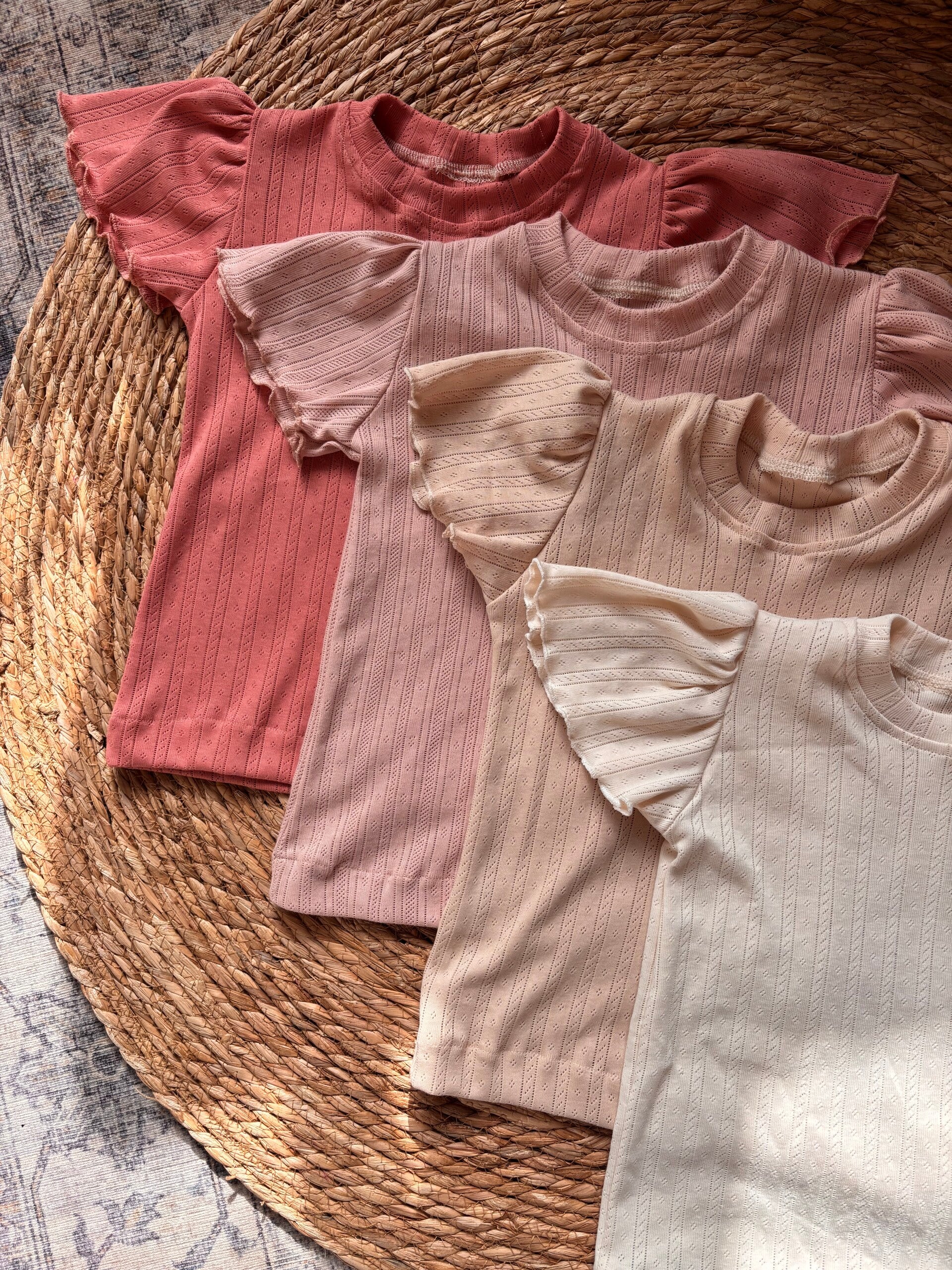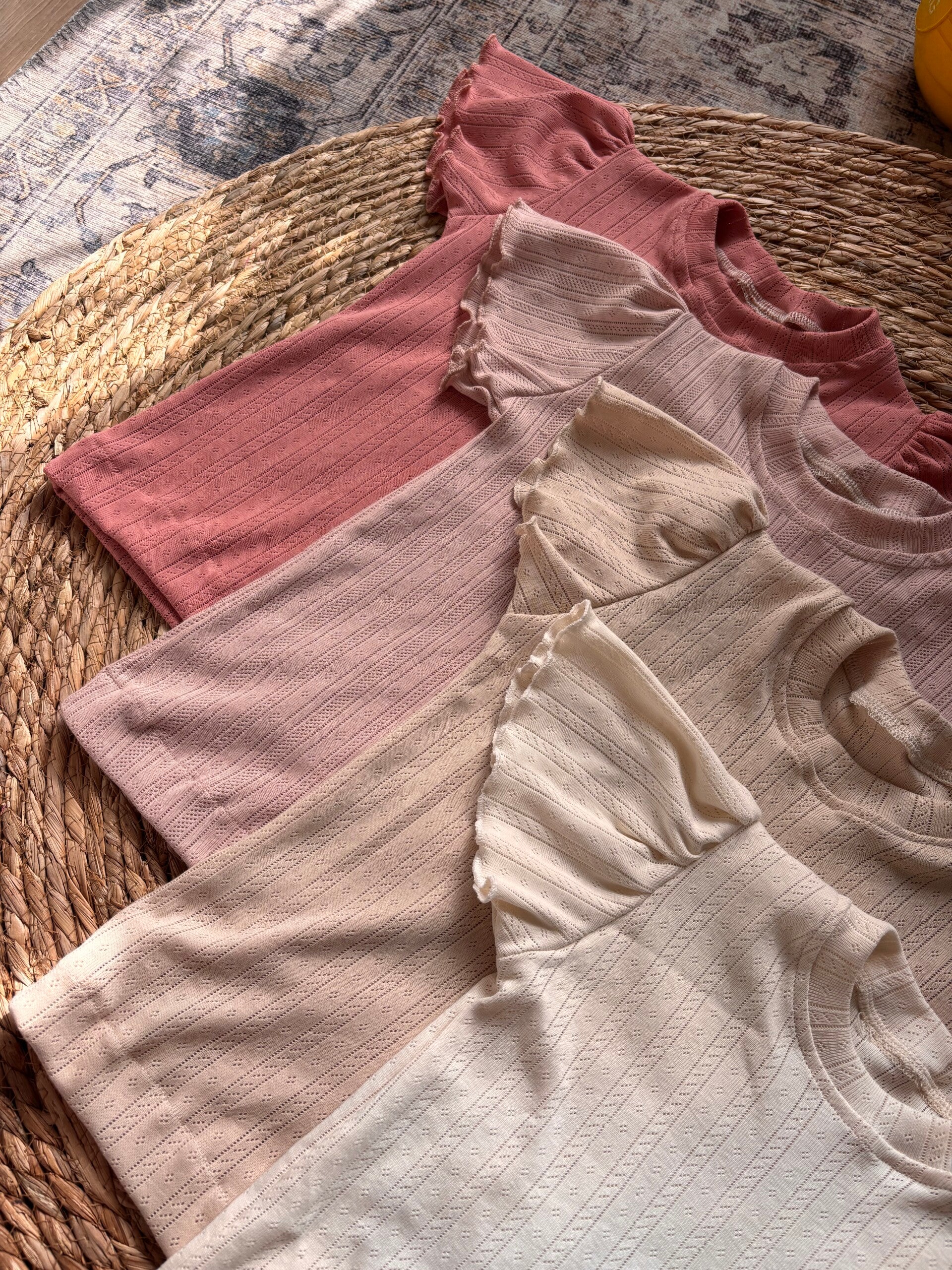 Fijn basic shirtje in de kleur Off-White, gemaakt van een zachte en rekbare pointelle stof met een streepjes motief van 100% katoen.