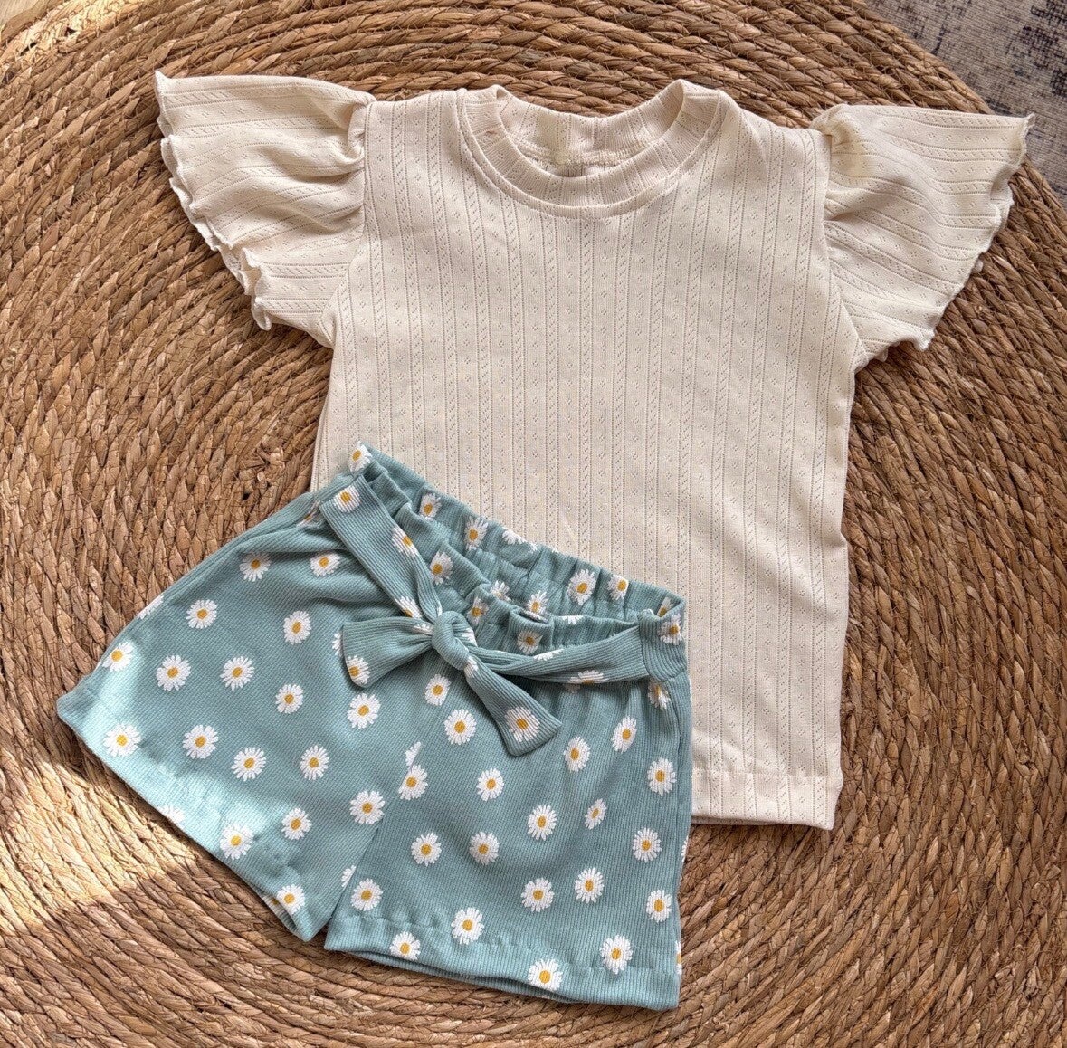 Fluttersleeve Striped Pointelle OffWhite